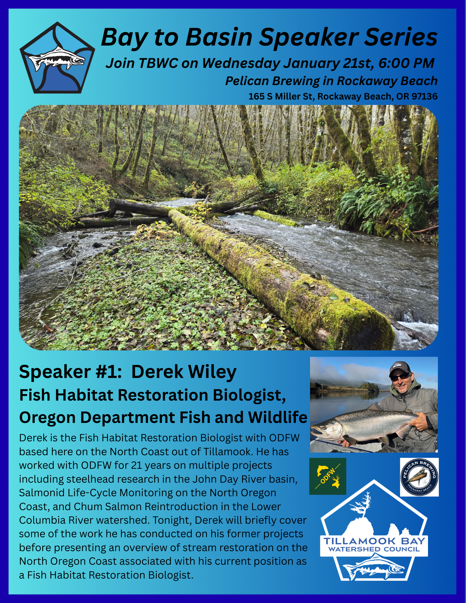 Jan. 21st 6:00 PM - Derek Wiley (ODFW) @ Pelican Brewing Rockaway