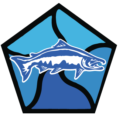 Within the pentagon swims a Coho salmon, a reminder of the rich natural life that depends on clean, healthy rivers. The salmon reflects both the beauty of our waterways and our shared responsibility to protect them.